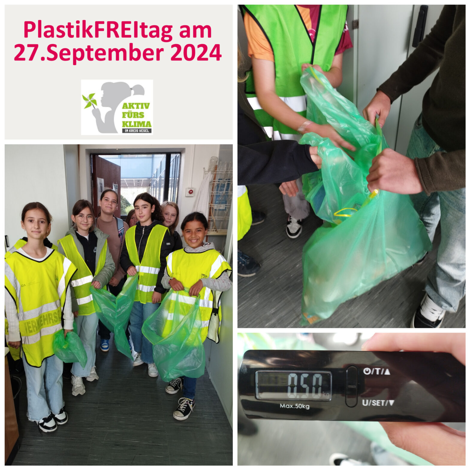 In „Geheimmission“ wurde der Aktionstag PlastikFREItag im Rahmen des Projekts „aktiv fürs Klima“ vorbereitet und an dem Tag mit einer Durchsage angekündigt. Ziel war es zu erfassen, wie viel Plastikmüll an einem Tag am GFG anfällt. Gesammelt wurde der Plastikmüll in der 1. und 2. großen Pause. Gut sichtbar durch gelbe und grüne Warnwesten positionierten …