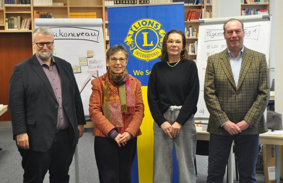 Alexander Winzen, Schulleiter des Georg-Forster-Gymnasiums und LQ-Beauftragter des LC Kamp-Lintfort/Rheinberg, Renate Hirt, Präsidentin des LC Kamp-Lintfort/Rheinberg, Dr. Astrid Czubayko-Reiß, Schulleiterin des Grafschafter-Gymnasiums, und Henner Sander, Beauftragter des LC Moers für das Lions-Quest-Programm, freuen sich über eine gelungene Fortbildung.