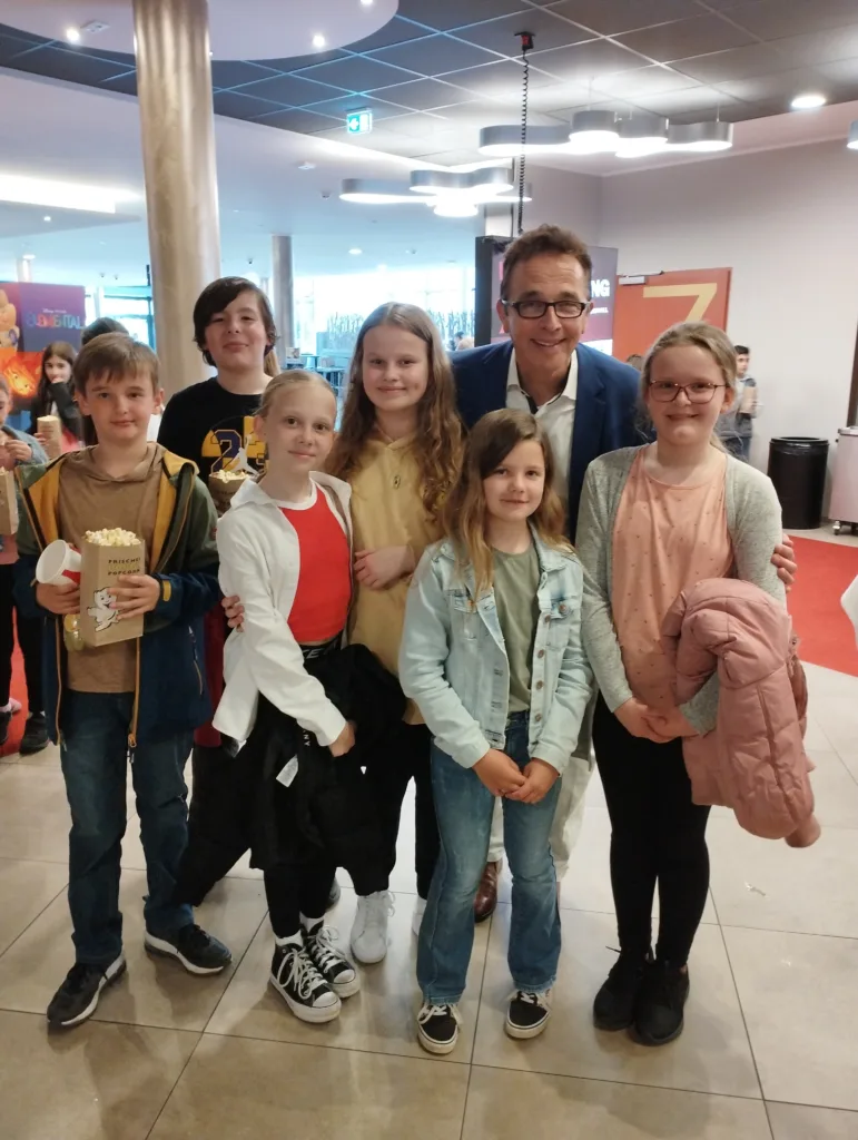 Stellvertretend für das GFG sind aus den Klassen 5a, 5b und 5c einige Kinder am Freitag den 26.05.2023 um 11 Uhr zum offiziellen Pressetermin und der Preisverleihung ins Kino Hall of Fame gegangen. Highlight für die Kinder war nicht nur die Preisverkündung, sondern auch die Anwesenheit von Bürgermeister Prof. Dr. Christoph Landscheidt und das private Foto-Shooting mit ihm sowie das gesponserte Popcorn des Kinos, das Kraft für den Rückweg zur Schule und die letzten Unterrichtsstunden spendete.