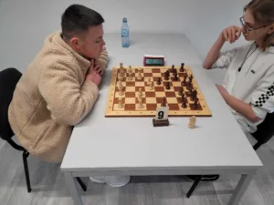 Mit Joshua und Simon (beide EF) und Jona (8a) waren auch drei Spieler unserer Schule dabei, die nicht in der Schach-AG sind und sich dem Turnier trotzdem erfolgreich stellten. Vor allem für Joshua und Simon war dies eine neue Erfahrung, da beide zum ersten Mal an einem echten Brett und nicht mehr nur online spielten.